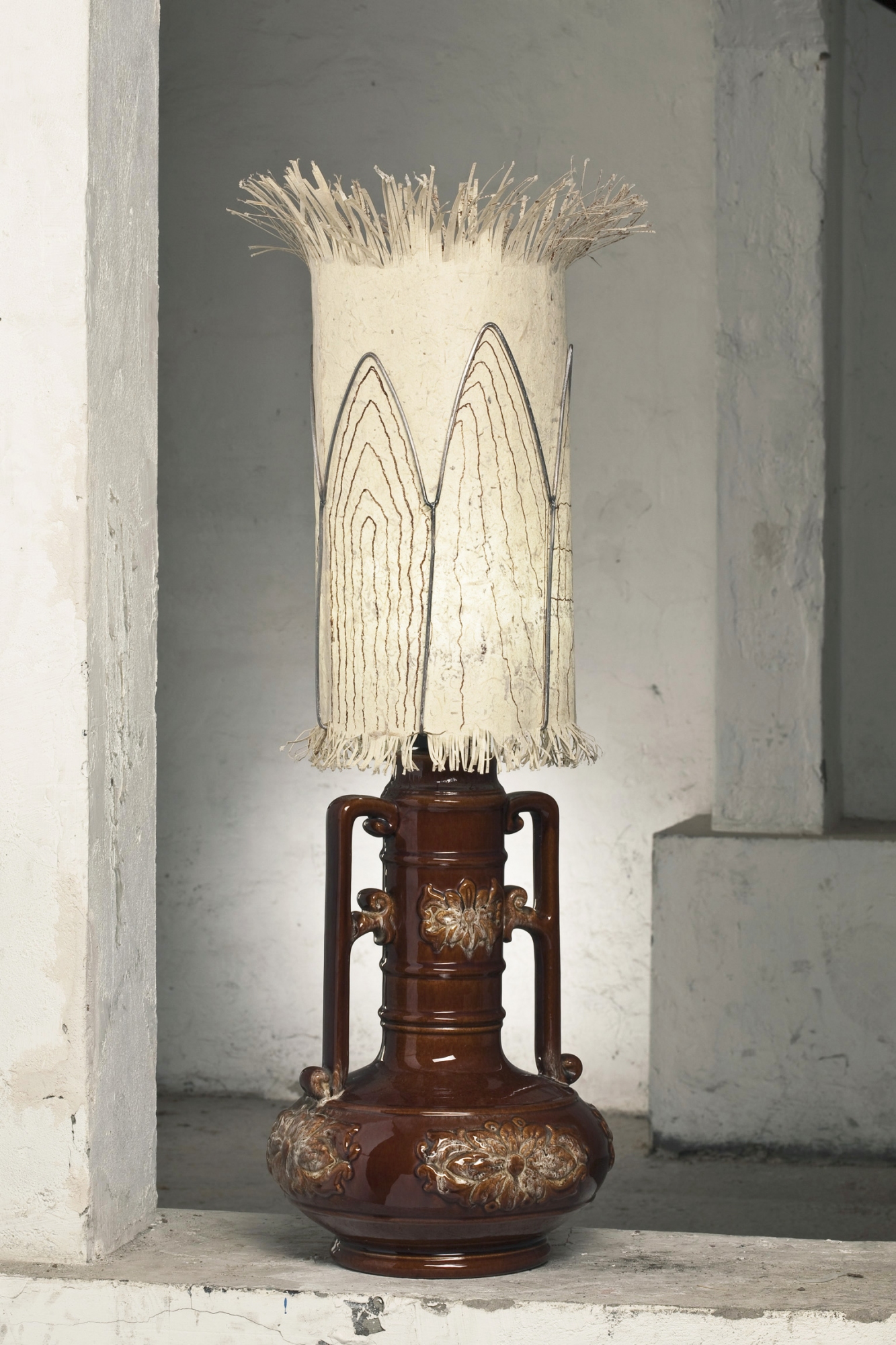Material: Japanpapier, Pigmenttinte, Draht, Keramikfuß