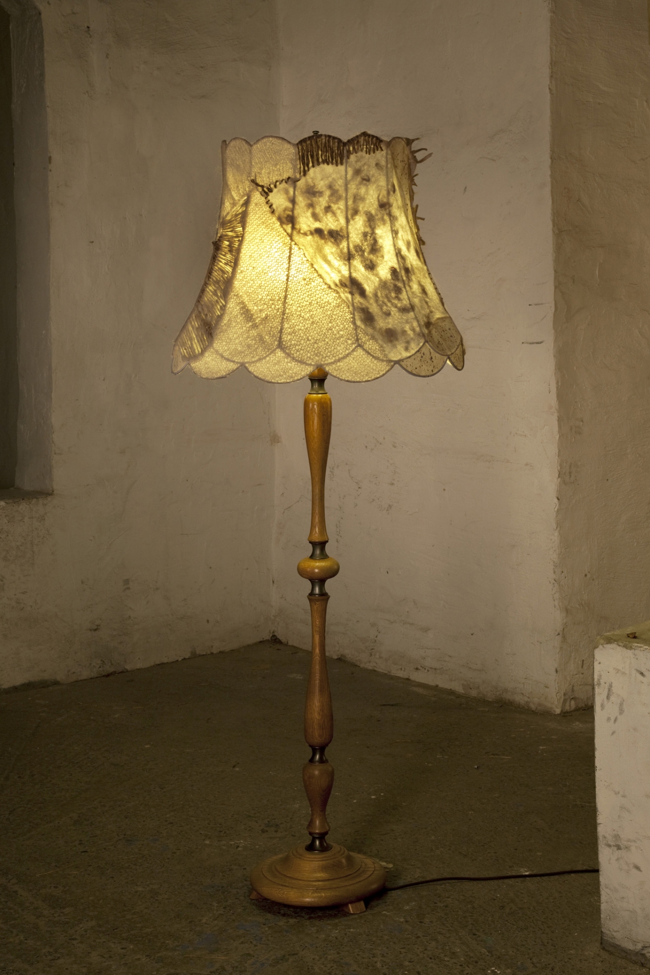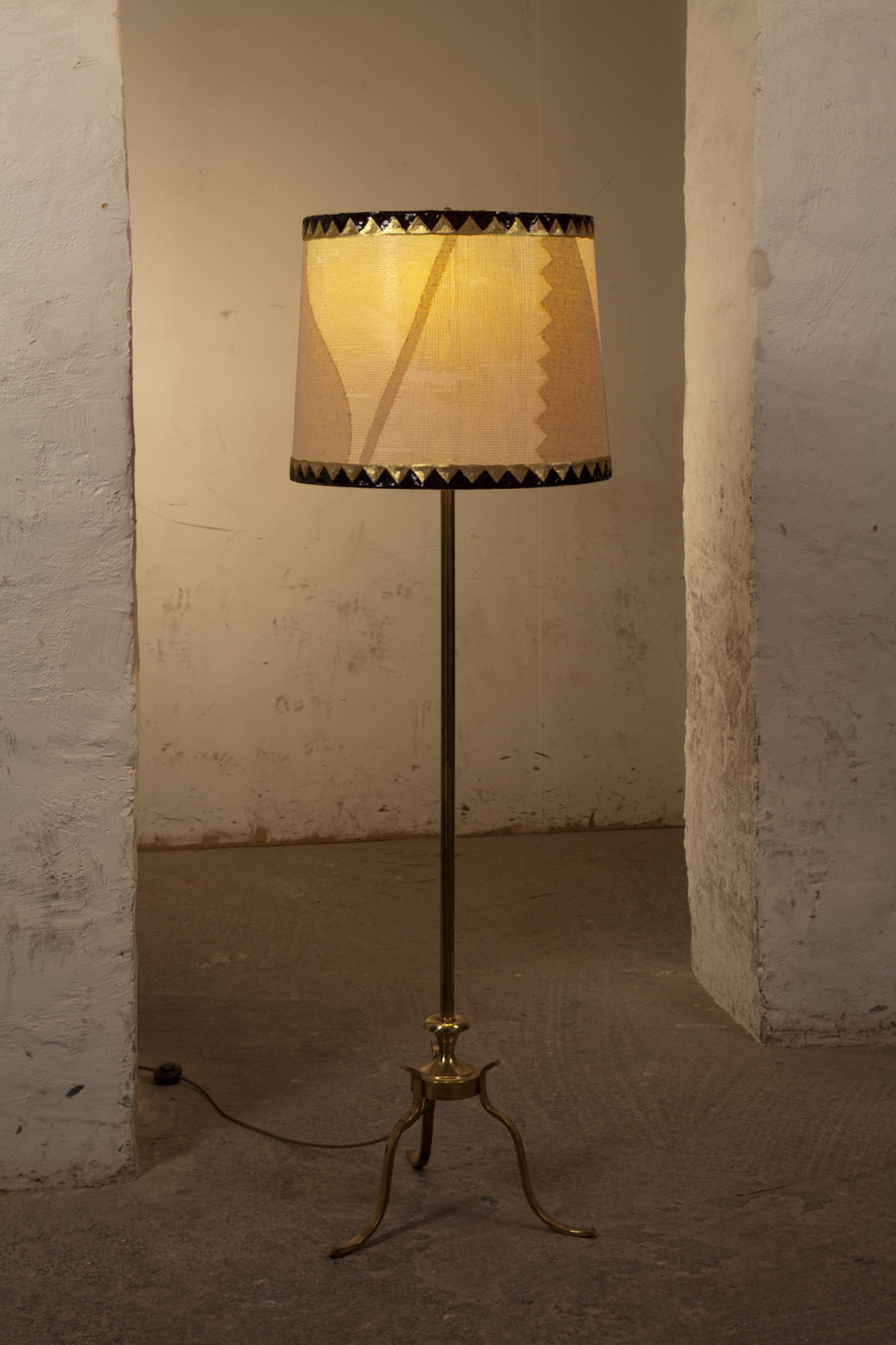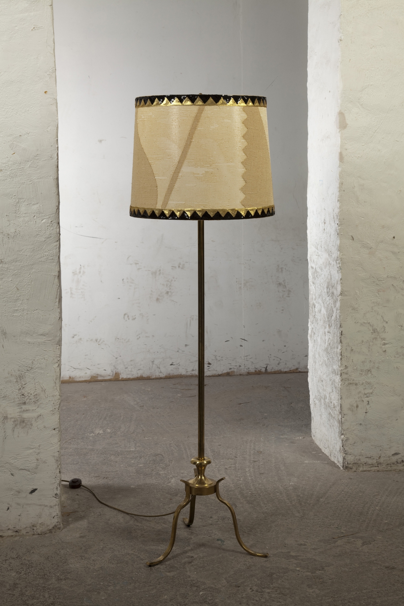 Material: Lampenschirmfolie, Stoff, Kleber, Bordüre