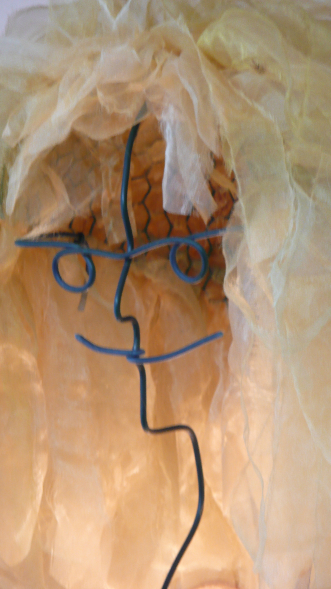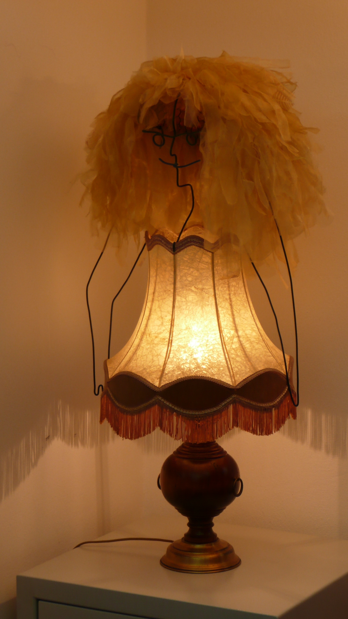 Material: Lampenschirm, Draht, Organza, Holz, Metall